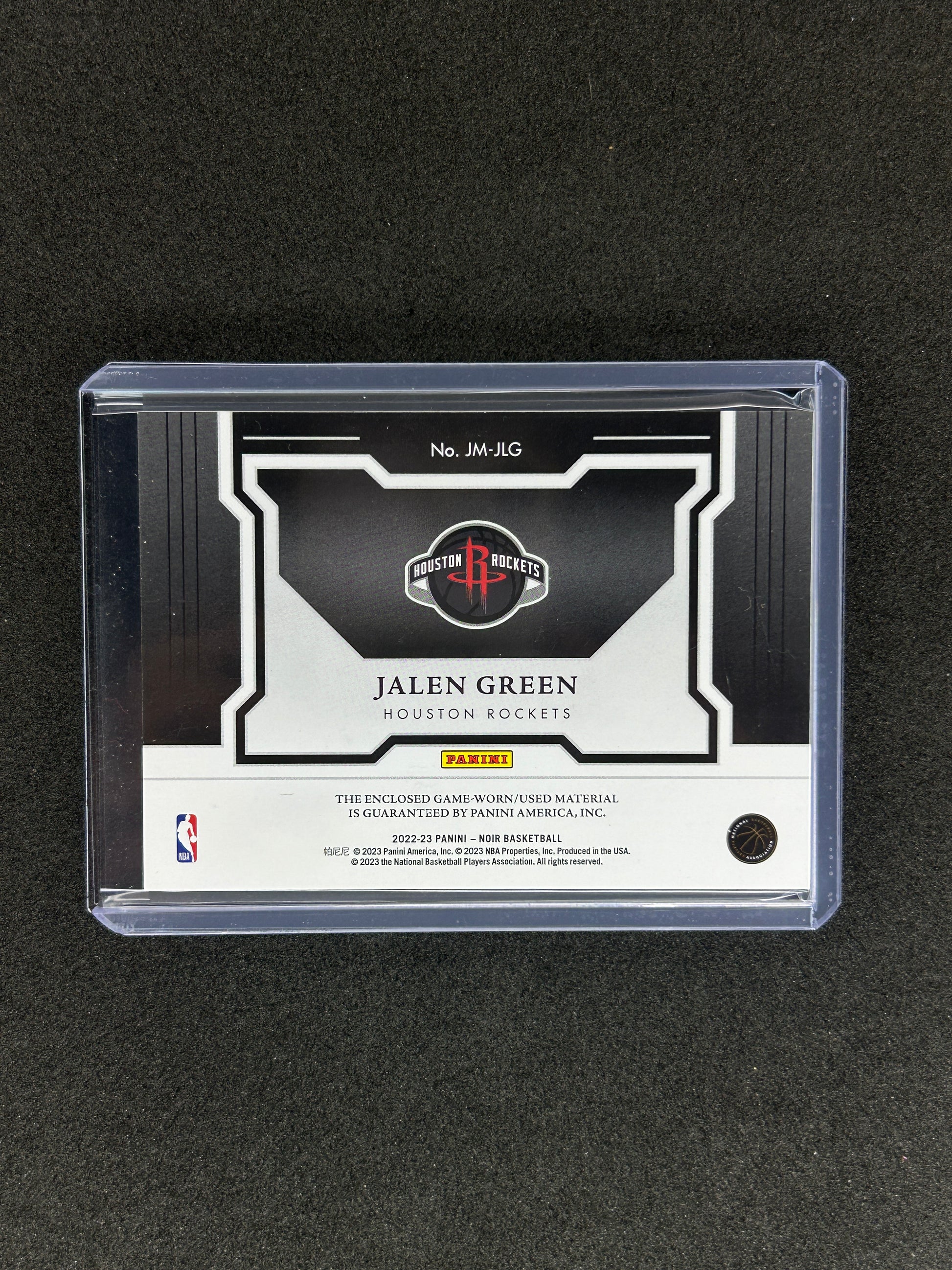 JALEN GREEN - 2023 PANINI NOIR - HOUSTON ROCKETS #JM-JLG /99 PATCH