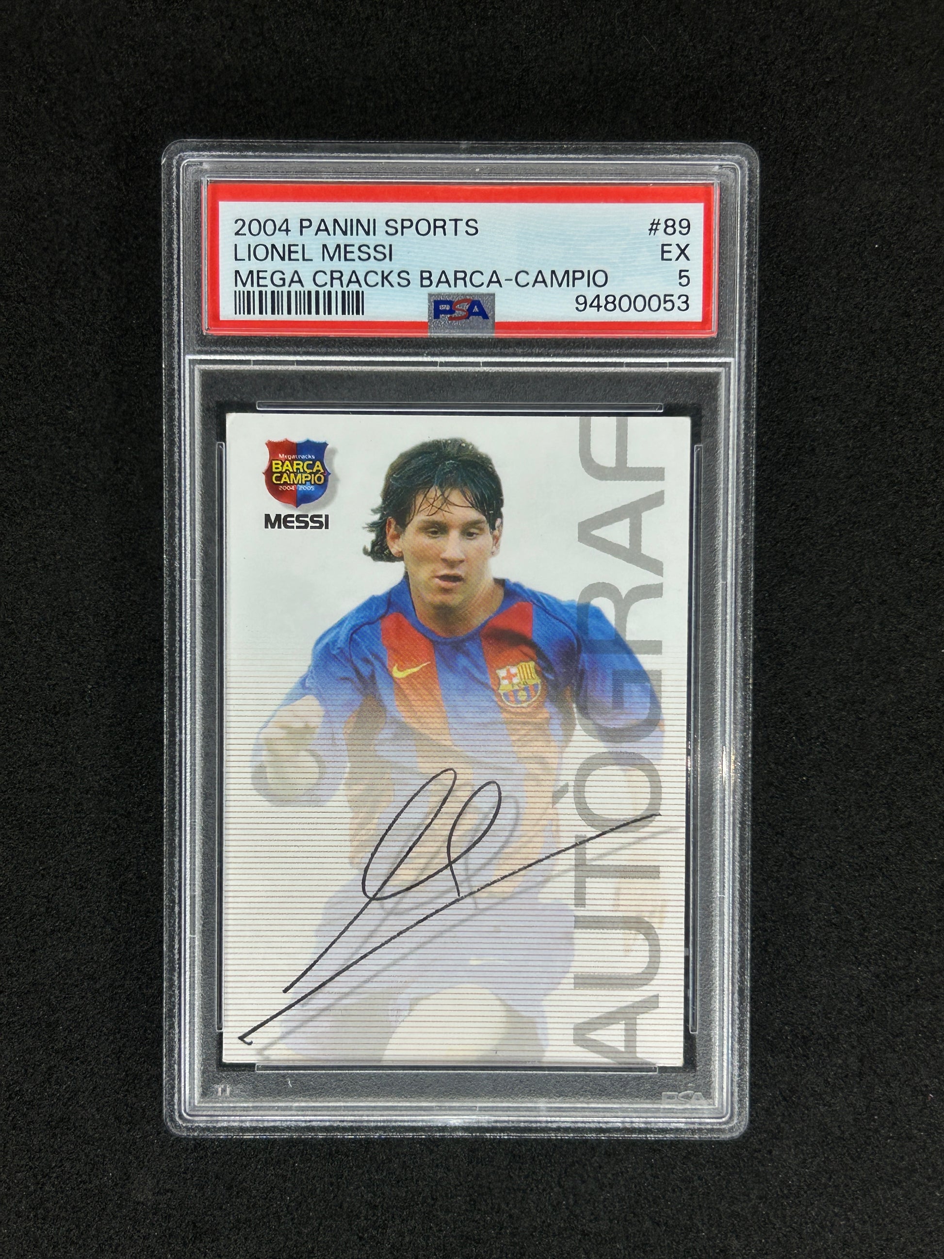 LIONEL MESSI - 2004-05 PANINI SPORTS MEGA CRACKS BARCA-CAMPIO - PSA 5