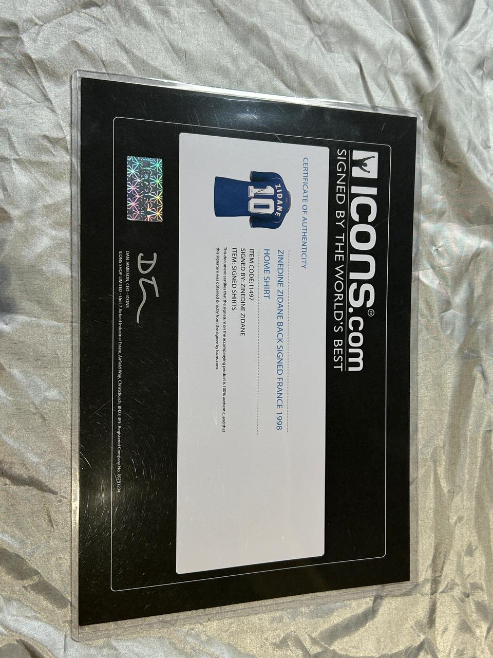 ZINEDINE ZIDANE BACK SIGNED FRANCE 1998 HOME SHIRT
