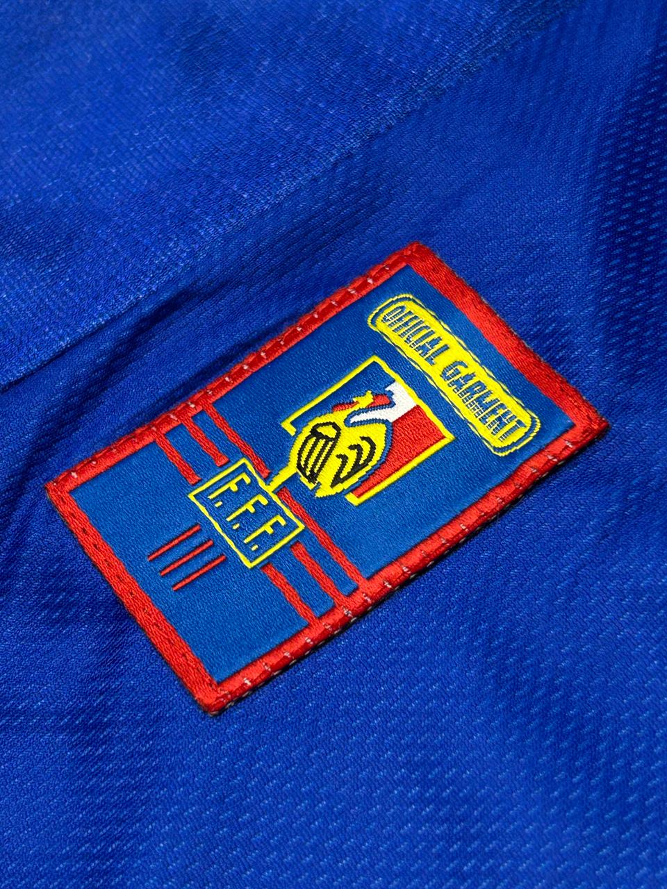 Rasakan nostalgia kejayaan Piala Dunia 1998 dengan koleksi langka ini! Jersey Timnas Prancis 1998 bergaya retro ini hadir dengan desain ikonik berwarna biru khas “Les Bleus”, lengkap dengan detail garis merah–putih dan logo FFF bermahkota bintang emas. Produk ini semakin istimewa karena menampilkan nama dan nomor legendaris Zinedine Zidane (#10) di bagian belakang, serta tanda tangan asli Zidane pada angka “10”.